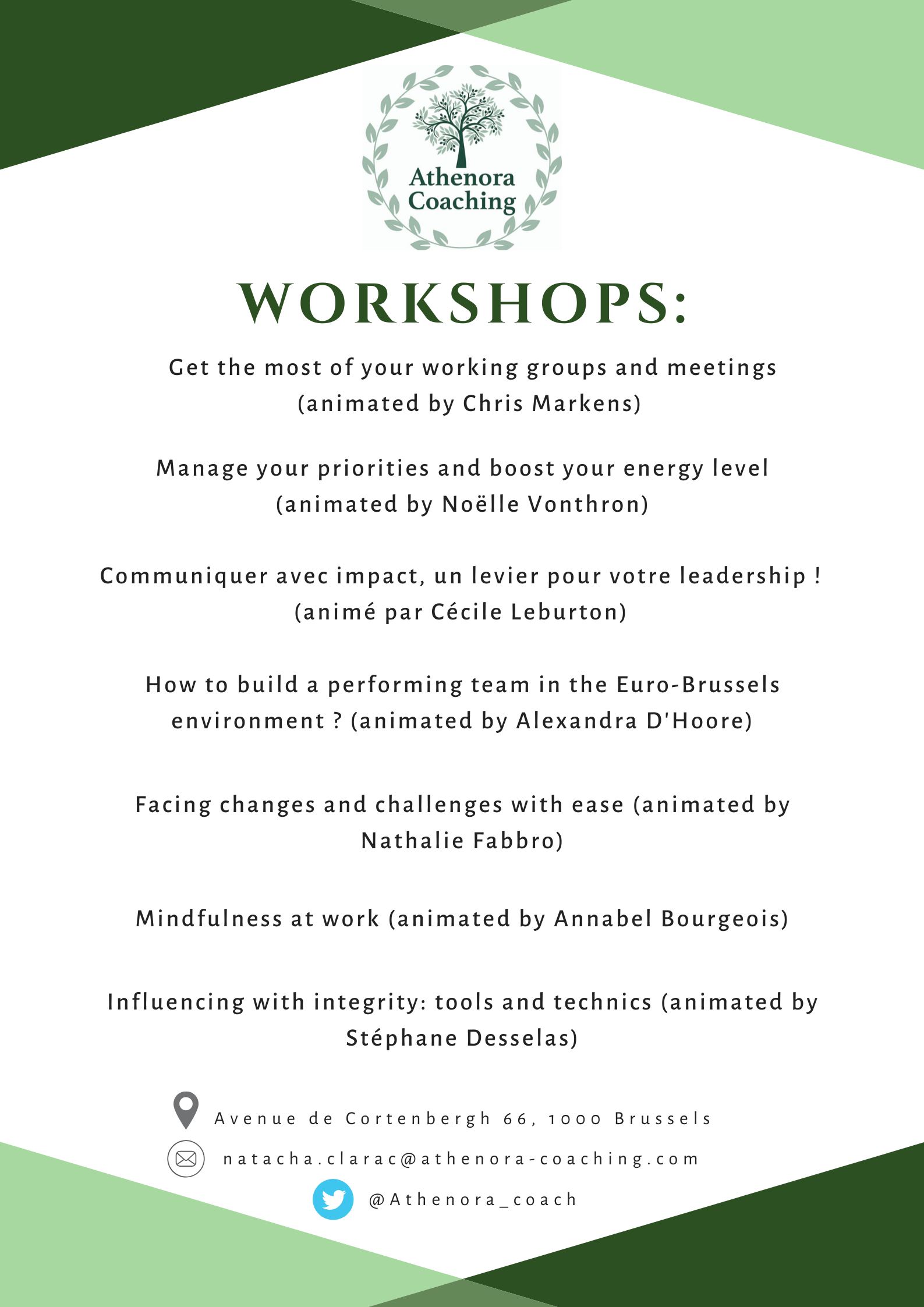 Educated as a lawyer, EU lobbyist for more than 25 years, I am a serial entrepreneur, loving creating new organizations and bodies (more than 6 in 15 years !). I made lots of personal development for more than 10 years and became a certified coach in 2015. I am also a senior trainer. I like very much training, coaching or mentoring new people to make them developing all their full potential. I would define myself a as an humble guide.